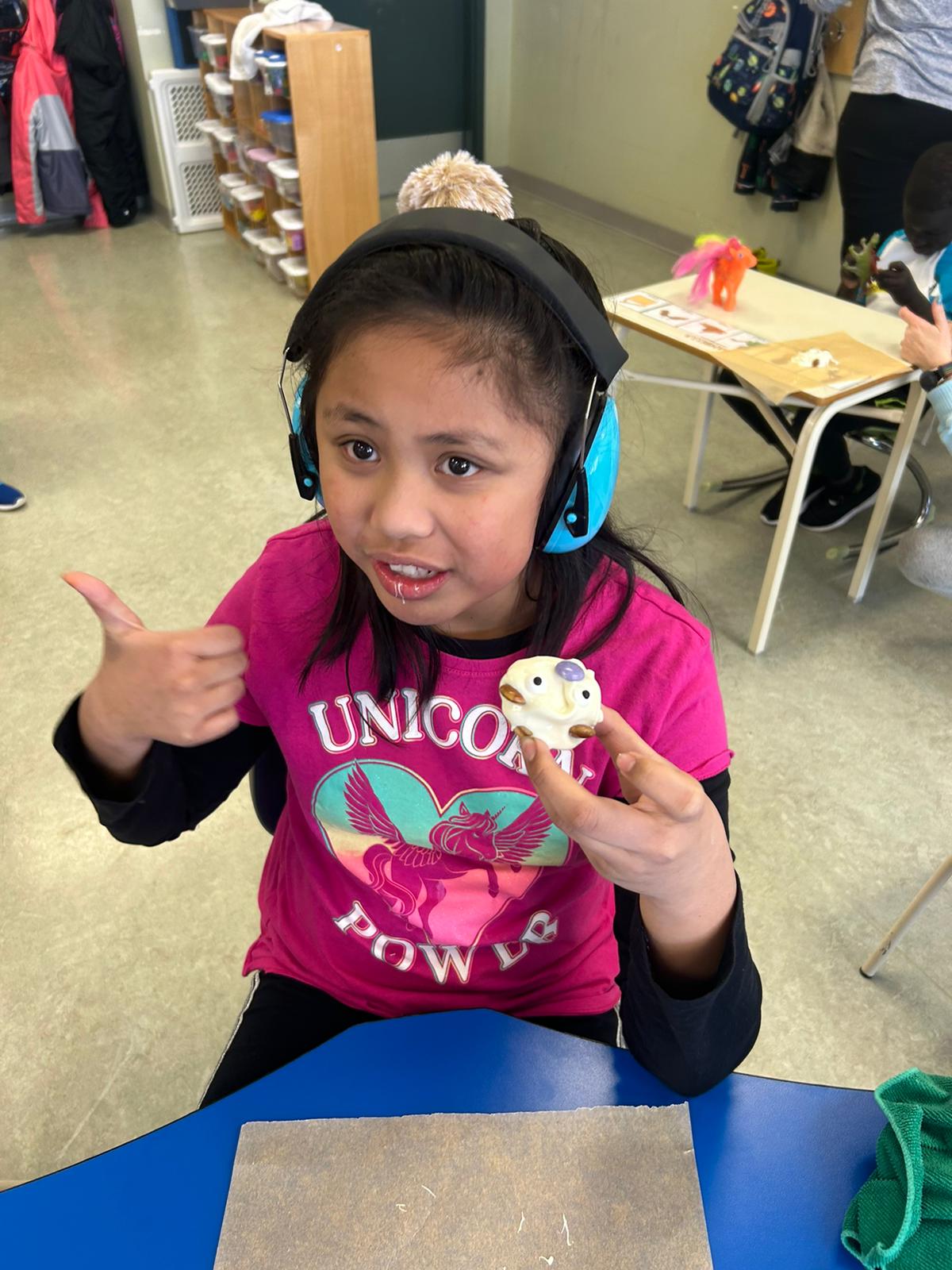 In cooking, after the "blue" week and dealing with such cold weather, we made hot chocolate and polar bear cookies. It was a huge hit with our students.